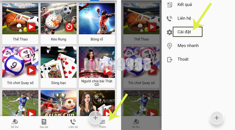 đến vị trí khác bất kỳ trên màn hình. Click vào nút “Thêm“, Click vào “Cài đặt